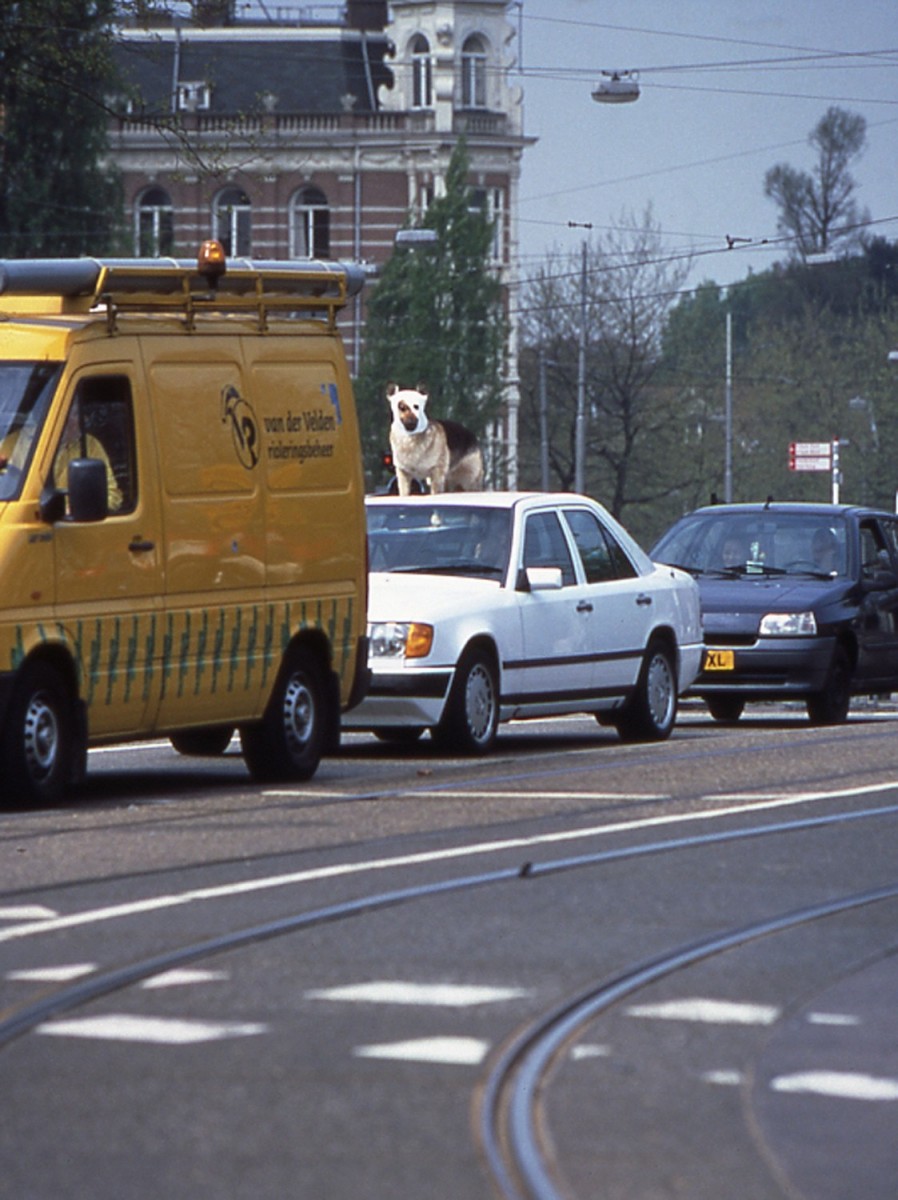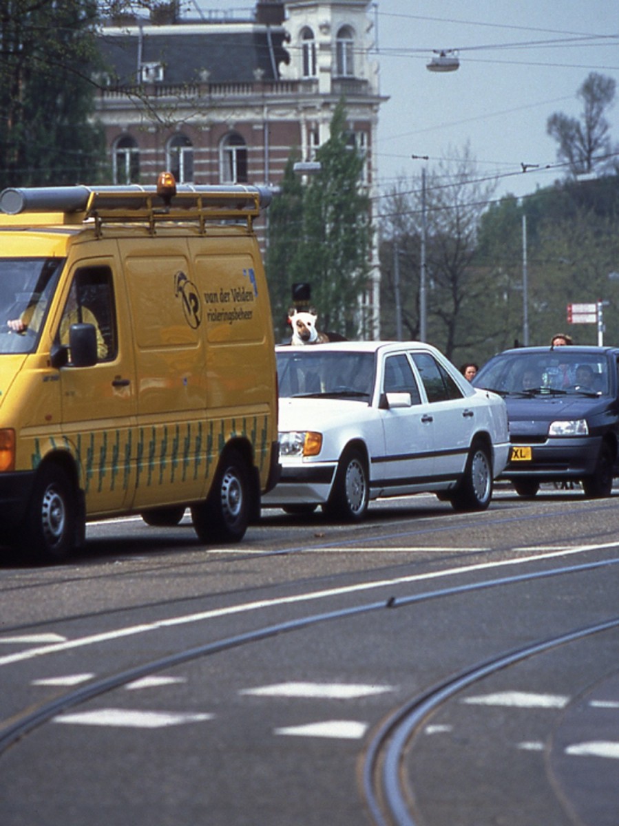 The work was made to join in ordinary traffic situations of everyday city life. It appeared (among others) in the streets of Amsterdam, The Hague (The Netherlands), Graz (Austria), Lier (Begium), Helsinki (Finland) and Bochum (Germany). It was made in the scope of the 'Prix de Rome' at the Rijksakademie Amsterdam, Netherlands.