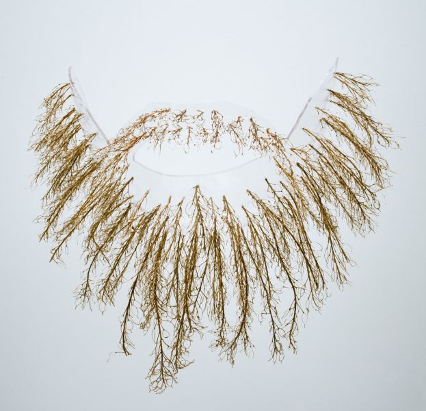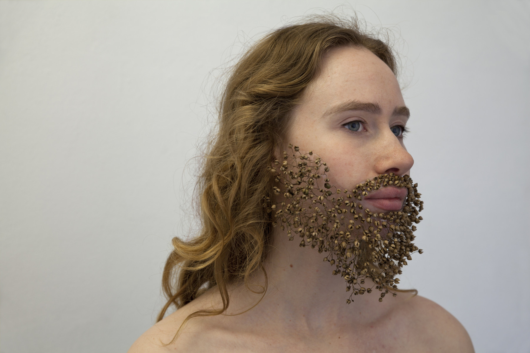 The project Beard Prosthesis includes in total 4 four fictive, evolving plant-human hybrids. Starting points of the works are perfectly fitting prosthesis, especially made for each person. Beside thermally shaped acryl glass the prostheses are made out of different plant inflorescences (collected in the fall/ winter season). The plant parts were chosen according to the phenotypic characteristics of the participating humans; in the first place the color and consistence of their hair. The titles of the works are referring to botanical name – giving. The ‘x’ in scientific names of plants stands for a hybrid.