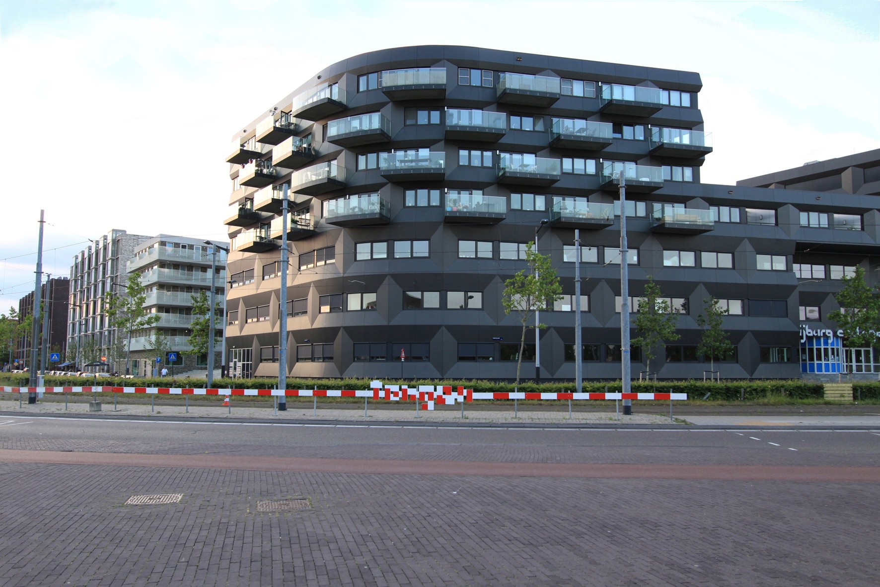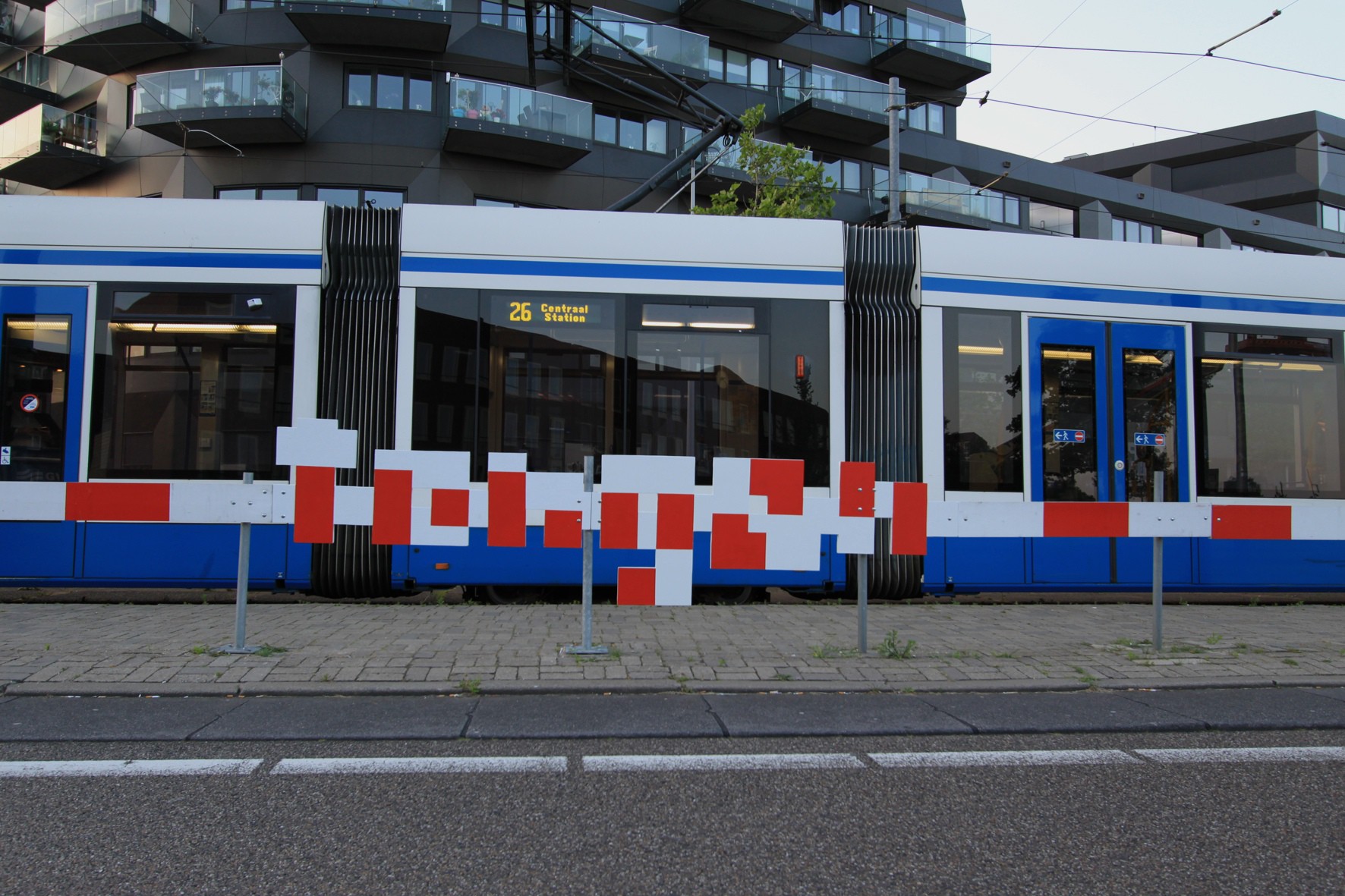 Meaningful Moments in Unspectacular Places is a subtle deformation of the basically functional arranged urban space around the tram stop Pampuslaan / IJburg College. This ordinary location is connected with the very intimate and for the involved persons often very intense and meaningful activity of French kissing. The rhythm of the red and white barrier could be seen as an abstraction of the movements of the tongues or the acceleration of the heartbeats just as the starting or still standing trains can become an allegory for the big emotions during or after a first kiss.